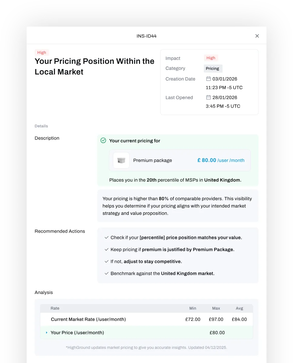 HighGround works for both. Smaller MSPs gain structure and consistency. Larger MSPs gain visibility, pricing control, and stack optimisation across more clients and vendors.